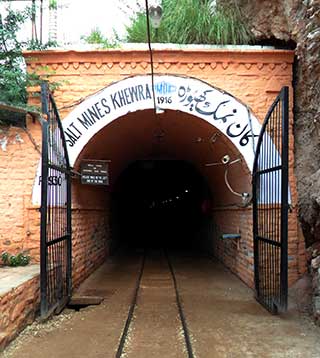 The Khewra Salt Mines is located in Khewra, north of Pind Dadan Khan,an administrative subdivision of Jhelum District, Punjab, Pakistan. It is Pakistan's largest and oldest salt mine and the world's second largest.It is a major tourist attaction. Its history dates back to its discovery by Alexander's troops in 320 BC, but it started trading in the Mughal era. The mine was discovered, however, not by Alexander, nor by his allies, but by his army's horses, when they were found licking the stones.